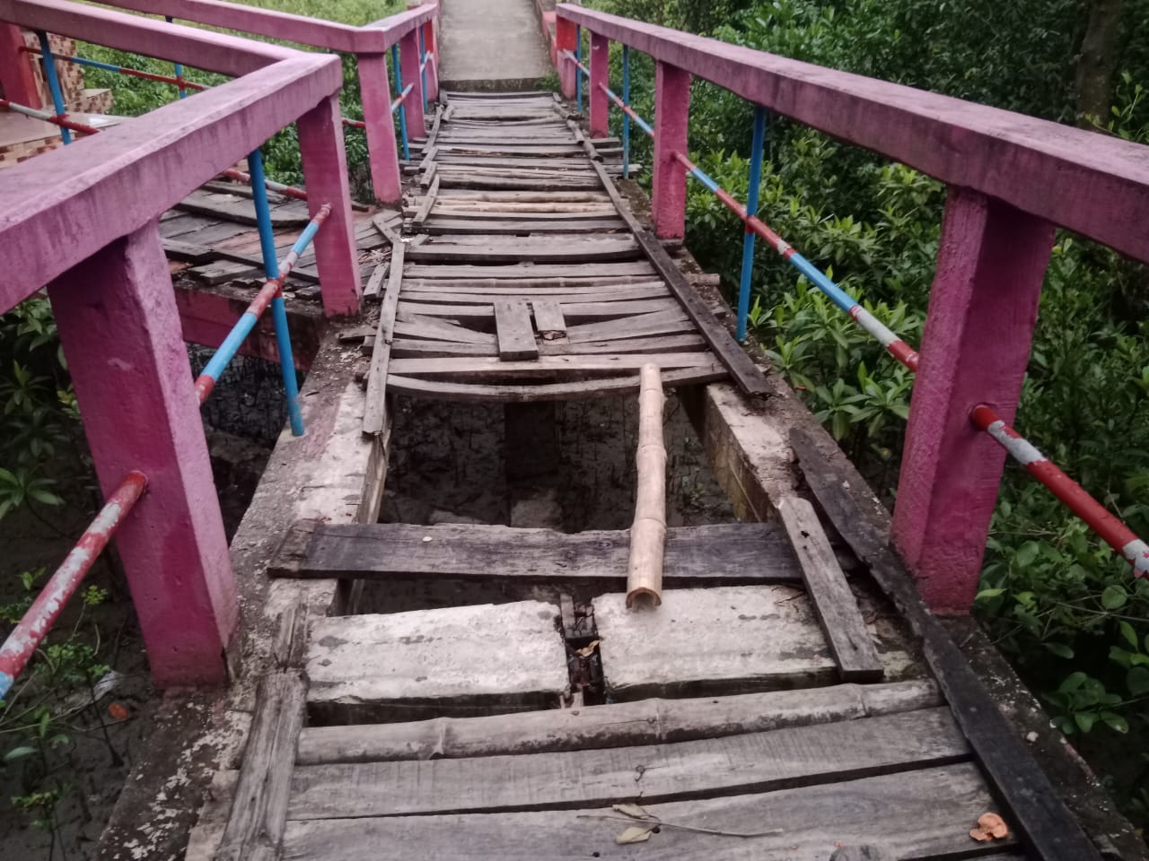 ভয়েস অব সুন্দরবন ।। সুন্দরবনের উপকণ্ঠে অবস্থিত সাতক্ষীরার শ্যামনগর উপজেলার কলবাড়ী এলাকার আকাশলীনা ইকোপার্কের পশ্চিম পার্শ্বের বড় টেইলটি ইতিমধ্যে জরাজীর্ণে পরিনত হয়েছে। এর উপর দিয়ে চলাচল খুবই ঝুকিপূর্ণ, যে কোন সময় দুর্ঘটনা ঘটতে পারে, এমনটি জানালো ঘুরতে আসা স্কুল পড়ুয়া শিক্ষার্থী কাকলী পারভিন।