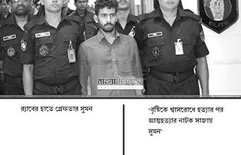 রাজধানীর মগবাজারে বৈকালী আবাসিক হোটেলে শ্যালিকা বৃষ্টিকে প্রথমে শ্বাসরোধে হত্যা করে বরিশালের উজিরপুরের মো. সুমন (২৯)। এরপর ঘটনাটি ভিন্নখাতে প্রবাহিত করতে বৃষ্টির গলায় ওড়না পেঁচিয়ে ফ্যানের সঙ্গে লাশ ঝুলিয়ে রাখে