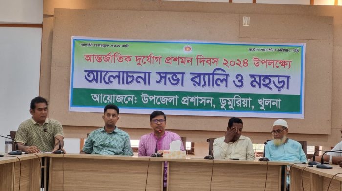শেখ মাহতাব হোসেন ডুমুরিয়া খুলনা। রবিবার সকাল ১০টায় ডুমুরিয়া উপজেলা প্রশাসনের আয়োজনে আন্তর্জাতিক দুর্যোগ প্রশমন দিবস ২০২৪ উপলক্ষ্যে আলোচনা সভা র্যালি ও মহড়া অনুষ্ঠিত আগামী প্রজন্মেকে সক্ষম করি, দুর্যোগ