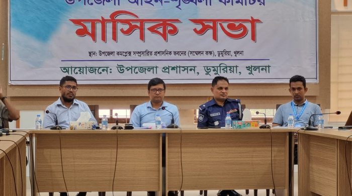 শেখ মাহতাব হোসেন ডুমুরিয়া খুলনা। সোমবার সকাল সাড়ে ১০টায় ডুমুরিয়া উপজেলা কমপ্লেক্স সম্প্রসারণ প্রশাসনিক ভবনের সম্মেলন কক্ষে ডুমুরিয়া উপজেলা প্রশাসনের আয়োজনে উপজেলা মাসিক সভা অনুষ্ঠিত হয়। উক্ত সভায় সভাপতিত্ব