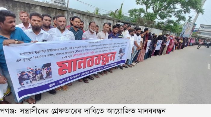 রূপগঞ্জ(নারায়ণগঞ্জ) প্রতিনিধি: নারায়ণগঞ্জের রূপগঞ্জ উপজেলা বিএনপি নেতাকর্মীদের বিরুদ্ধে অপপ্রচার ও সন্ত্রাসীদের গ্রেফতারের দাবিতে মানববন্ধন করা হয়েছে। গতকাল ৩০সেপ্টেম্বর সোমবার মুড়াপাড়া ইউনিয়নের মঠেরঘাট এলাকায় এ কর্মসূচি পালন করা হয়। read more