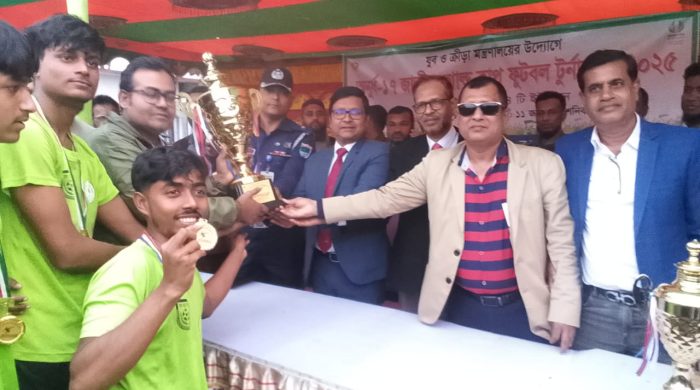 আশরাফুল আলমঃ ডুমুরিয়ায় যুব ও ক্রীড়া মন্ত্রণালয়ের উদ্যোগে বুধবার বিকালে কলেজ মাঠে অনূর্ধ্ব-১৭ জাতীয় গোল্ডকাপ ফুটবল টুর্নামেন্টের ফাইনাল খেলা ও পুরস্কার বিতরণী অনুষ্ঠিত হয়েছে। ডুমুরিয়া ইউনিয়ন ফুটবল দলকে পরাজিত