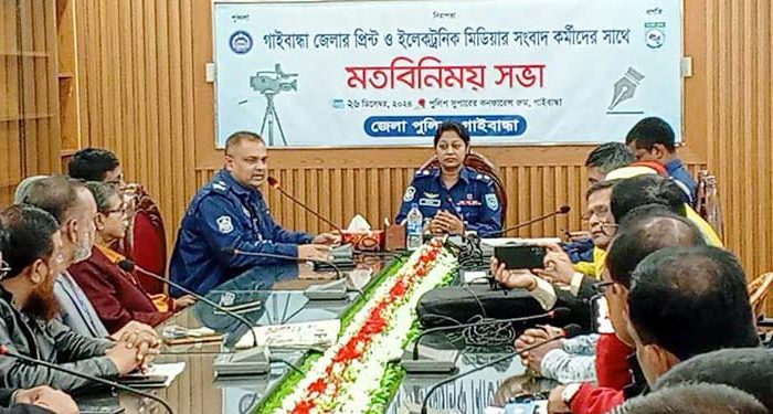 ফয়সাল রহমান জনি গাইবান্ধা জেলা প্রতিনিধি। নবাগত পুলিশ সুপার নিশাত এ্যাঞ্জেলা বৃহস্পতিবার দুপুরে গাইবান্ধায় কর্মরত সাংবাদিকদের সাথে পরিচিত হন। পুলিশ সুপারের কার্যালয় মিলনায়তনে অনুষ্ঠিত পরিচিতি অনুষ্ঠানে পুলিশ সুপার নিশাত