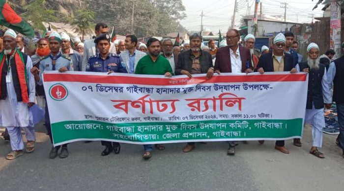 গাইবান্ধা প্রতিনিধি ৭ ডিসেম্বর শনিবার গাইবান্ধা হানাদার মুক্ত দিবস উদযাপন উপলক্ষে শহরে বর্ণাঢ্য র্যালি ও জেলা শিল্পকলা একাডেমি মিলনায়তনে আলোচনা সভা অনুষ্ঠিত হয়। বর্ণাঢ্য র্যালিটি পুরাতন টেলিফোন ভবন সংলগ্ন