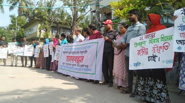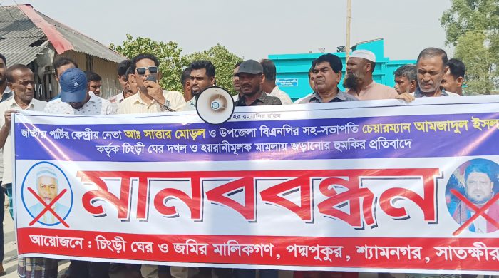 রিপোর্ট :ভয়েস অফ সুন্দরবন শ্যামনগর উপকূলীয় এলাকায় চিংড়ি ঘেরের বিরোধ নিয়ে জমির মালিক পক্ষের মানববন্ধন ও বিক্ষোভ সমাবেশ অনুষ্ঠিত হয়েছে। সোমবার বারোটার দিকে উপজেলার পদ্মপুকুর ইউনিয়নের চৌমনী মডেল এলাকায়