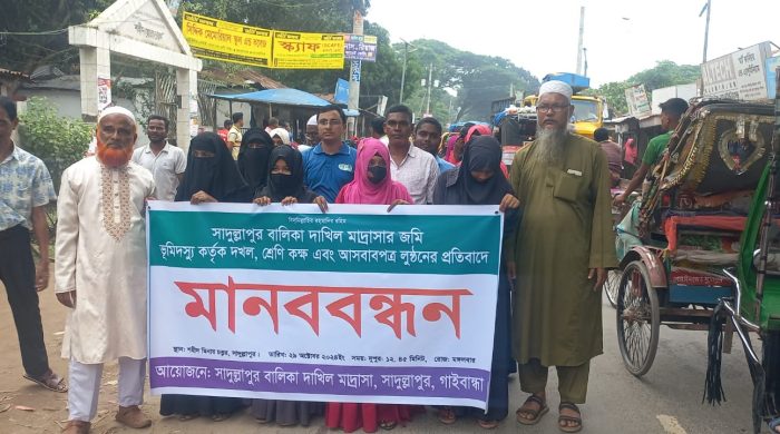 ফয়সাল রহমান জনি গাইবান্ধা জেলা প্রতিনিধি। গাইবান্ধার সাদুল্লাপুর ভূমি উপজেলা অফিস সংলগ্ন সাদুল্লাপুর বালিকা দাখিল মাদ্রাসার জমি ভূমিদস্যু কর্তৃক দখল,শ্রেণী কক্ষ এবং আসবাবপত্র লুন্ঠনের প্রতিবাদে মানববন্ধন অনুষ্ঠিত read more