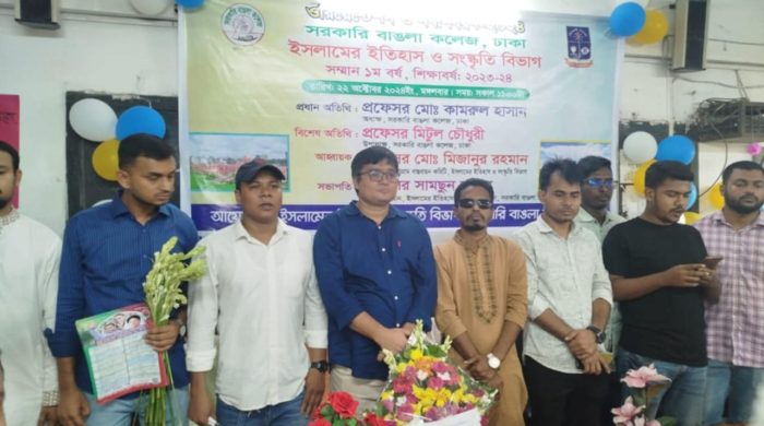 স্টাফ রিপোর্টার: ঐতিহ্যবাহী সরকারি বাঙলা কলেজের অধ্যক্ষ ও উপাধ্যক্ষকে ফুলেল শুভেচ্ছা জানান বাংলাদেশ জাতীয়তাবাদী ছাত্রদল সরকারি বাঙলা কলেজ কেন্দ্রীয় সংসদ। এসময় তারেক রহমানের পক্ষ থেকে নবিন শিক্ষার্থীদের মাঝে